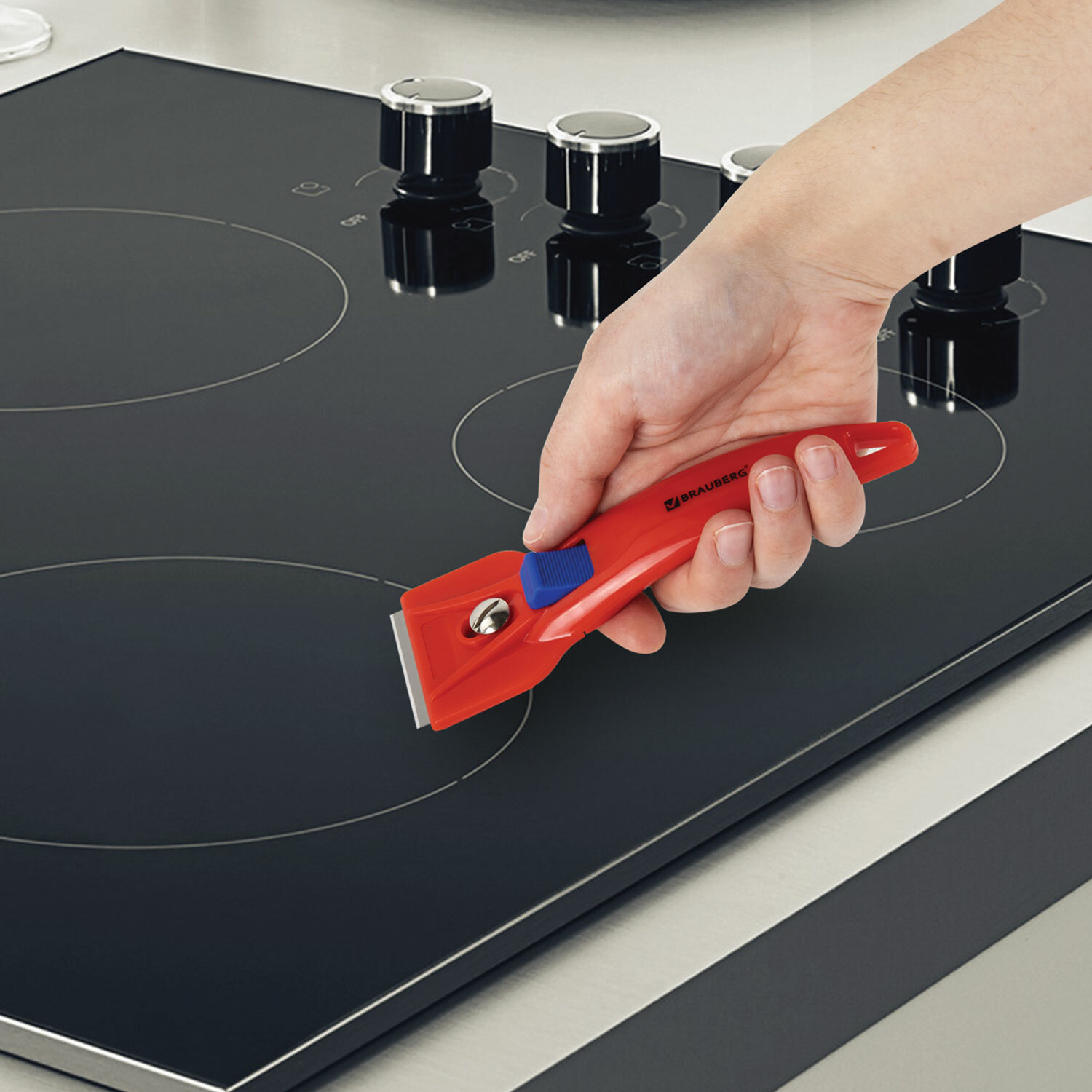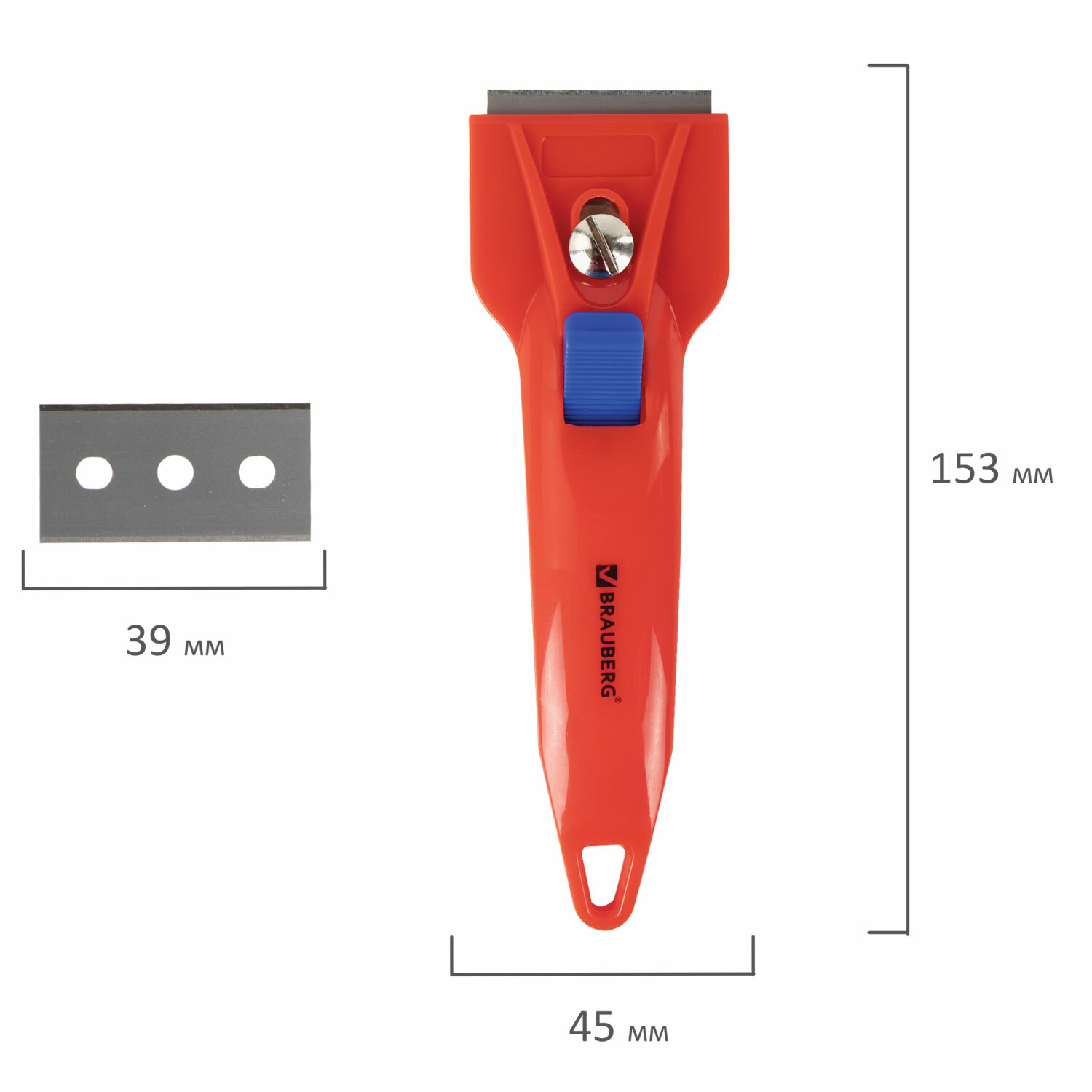 Скребок выполнен из прочного АBS пластика. Ширина лезвия - 39 мм. Это идеальный помощник для бережного и эффективного удаления с плоских и гладких поверхностей (стекло, плитка, керамические плиты, ламинат и ламинированные поверхности) свежих или застарелых загрязнений от жира, смолы, жевательной резинки, битума или краски.