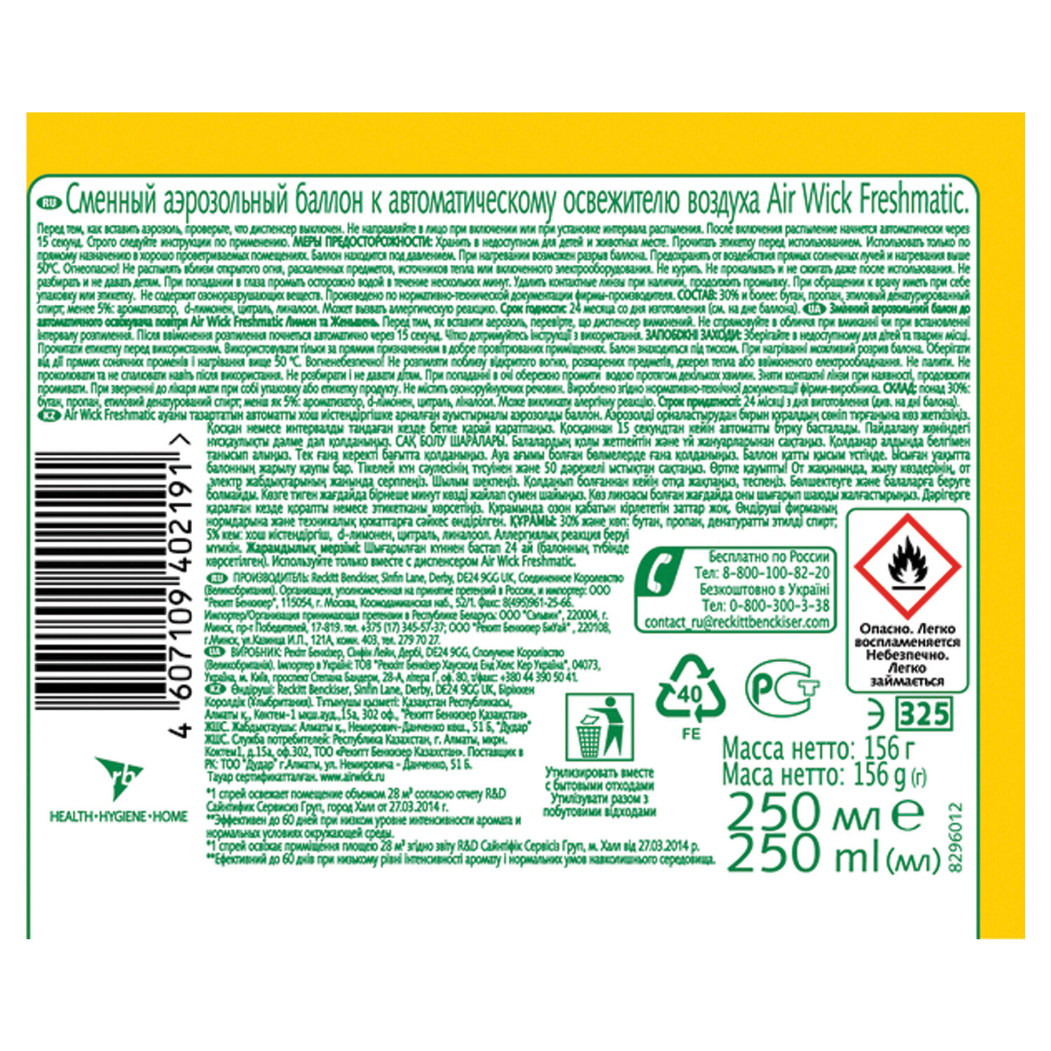 Совместим с диспенсерами: AIRWICK, GLADE, KSITEX Объем картриджа: 250 мл Отдушка: цитрусовая