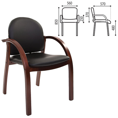 Цвет обивки: черный Материал обивки: экокожа Макс. нагрузка: 100 кг Цвет (покрытие) каркаса: орех Подлокотники: да Высота кресла: 850 мм Ширина кресла: 560 мм Глубина кресла: 570 мм Высота до сиденья: 480 мм Количество в комплекте: 1 шт. Соответствует требованиям ГОСТа: ГОСТ 19917-2014 Поставляется в разобранном виде: да