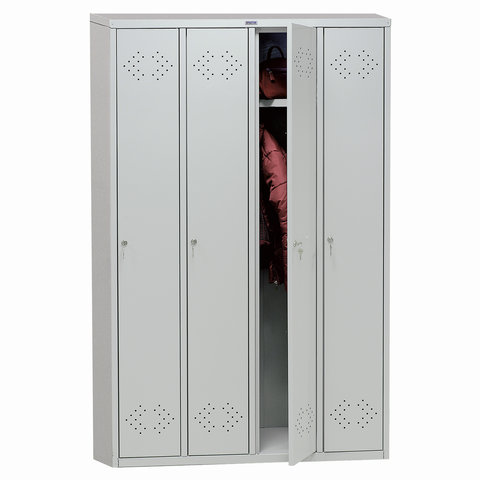 Количество секций: 4 Количество полок в отделении: 1 Конструкция: разобранная Дополнительная комплектация: держатель под личную карточку, крючки для одежды, полка для головных уборов, штанга для плечиков Тип замка: ключевой ПРАКТИК Вентиляционные отверстия в двери: да Возможность скреплять шкафы между собой: да Высота: 1830 мм Ширина: 1130 мм Глубина: 500 мм Вес: 55 кг Тип покрытия корпуса: порошковое Цвет: серый Соответствует требованиям ГОСТа: ГОСТ 16371-2014 Крепеж в комплекте: заклепки, саморезы Тип поставки: в разобранном виде