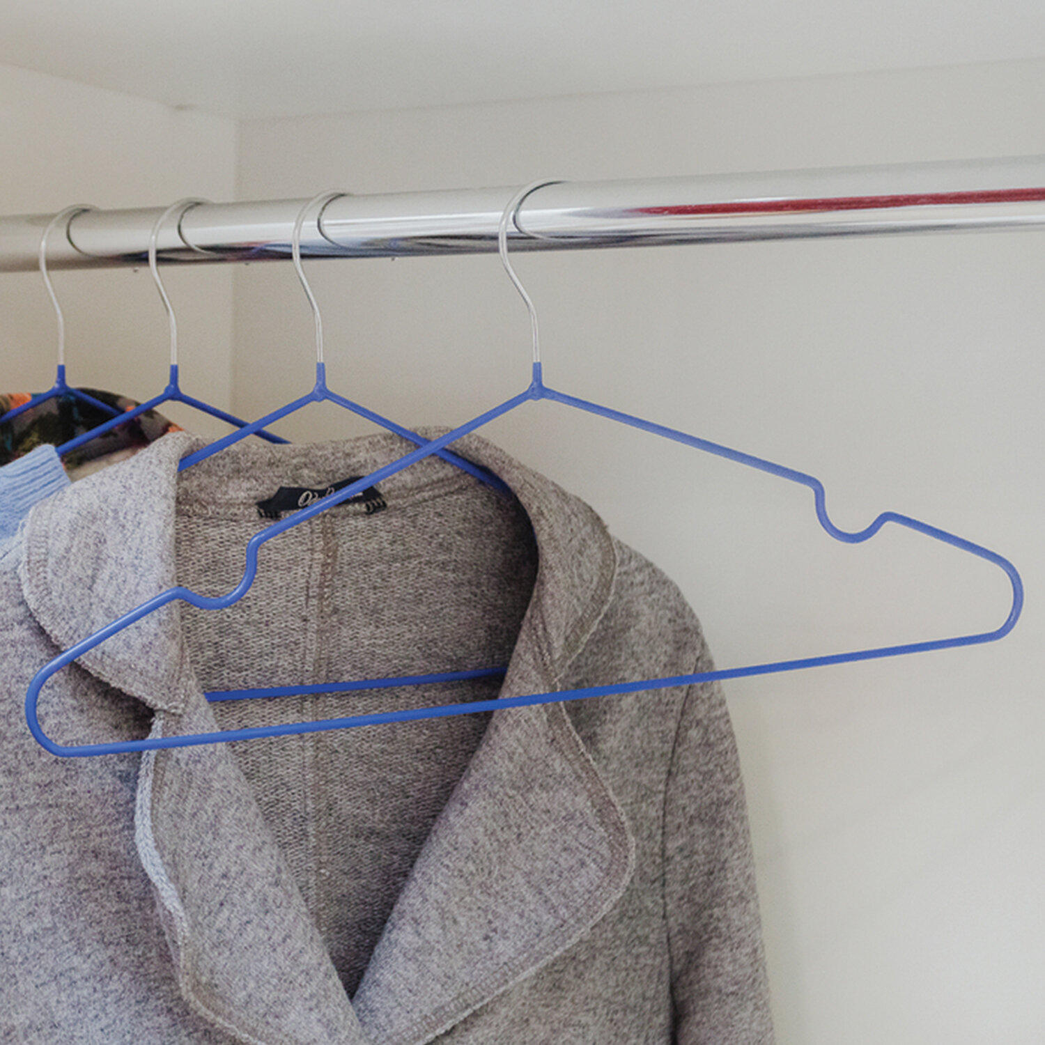 Материал каркаса: металл/ПВХ Размер модели: 48-50 Ширина: 40 см С перекладиной: да Крепление для брюк и юбок: выемки Особенности: невыкручивающийся крючок Покрытие: глянцевое Количество в комплекте: 10 шт Цвет каркаса: синий